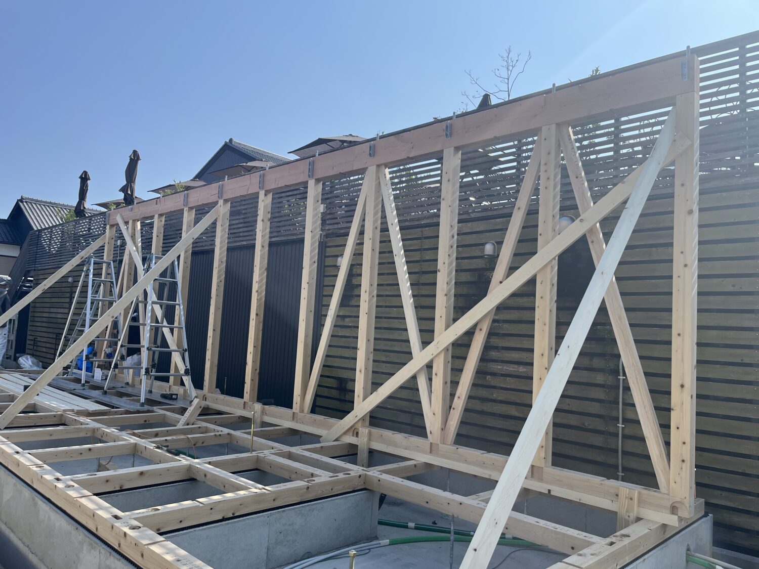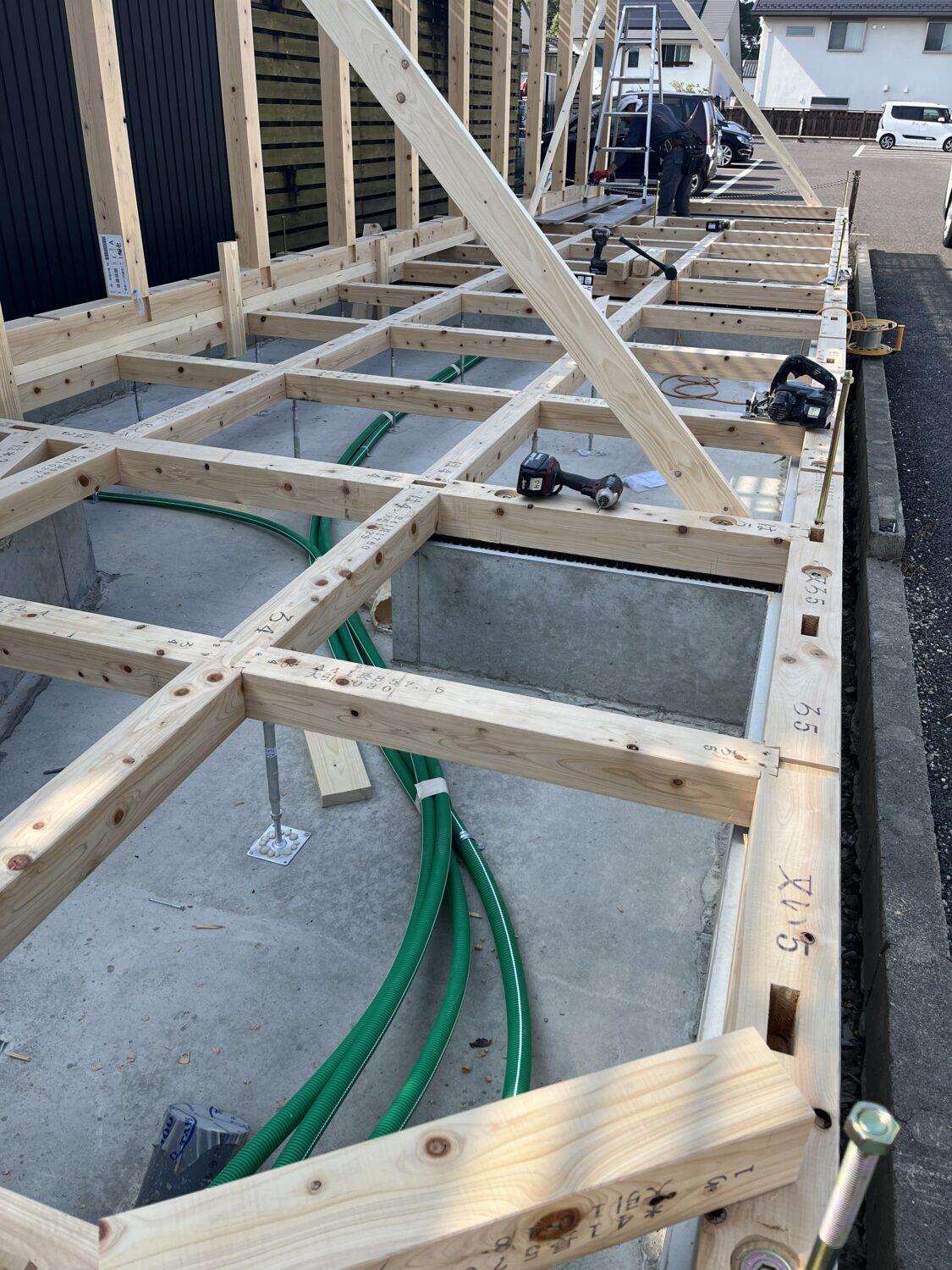 土台・押し壁工事 2023/11/02 犬山市G様邸 大工工事 基礎工事が終わり、今日から土台・押し壁部の 施工に入っております。 南面の作業スペースが狭い為、あらかじめ外壁を 仕上げておき、上棟当日に組み上げていく工程と なります。 今回の上棟工事は一階部分と二階以上とに分け、 2日上棟を予定しております。 現場は11月10日に一階部の上棟を迎えます。 よろしくお願いします。 現場監督さんの力こぶ日記 おすすめ関連記事 犬山市T様邸 外構工事 豊山町 Y様邸 塗装 雨楽な家 知多市M様邸 知多市M様邸 ツイート シェア Google+1 はてブ pocket LINE