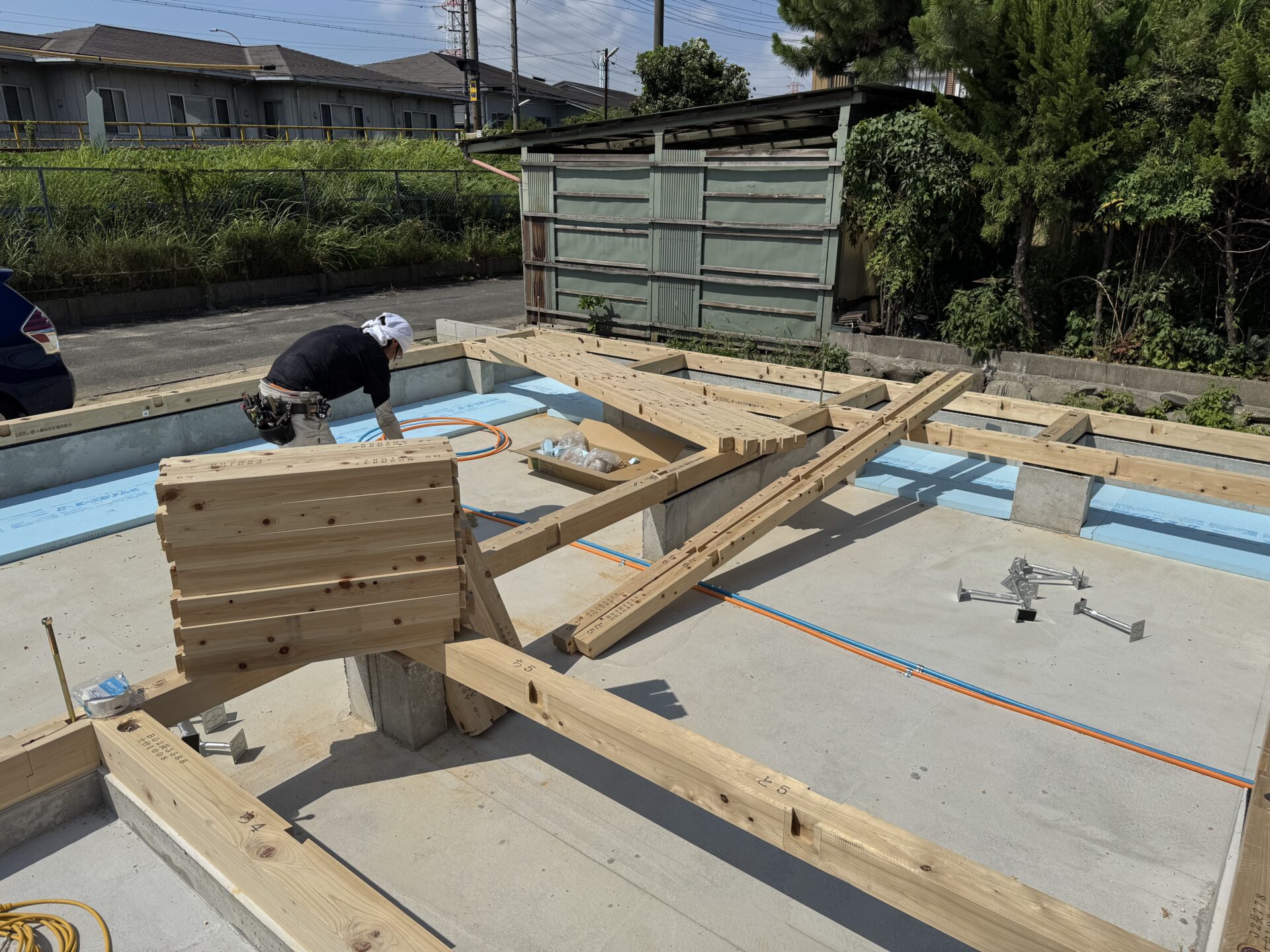 土台伏せ 2025/07/12 雨楽な家 知多市K様邸 来週の上棟工事に向けて、今日は棟梁により一階の土台と床伏せ及び基礎断熱工事を行いました。 現場監督さんの力こぶ日記 おすすめ関連記事 ‘雨楽な家’常滑市K様邸 ‘雨楽な家’ 常滑市K様邸 土台伏せ作業 外装工事・大工工事 ツイート シェア Google+1 はてブ pocket LINE
