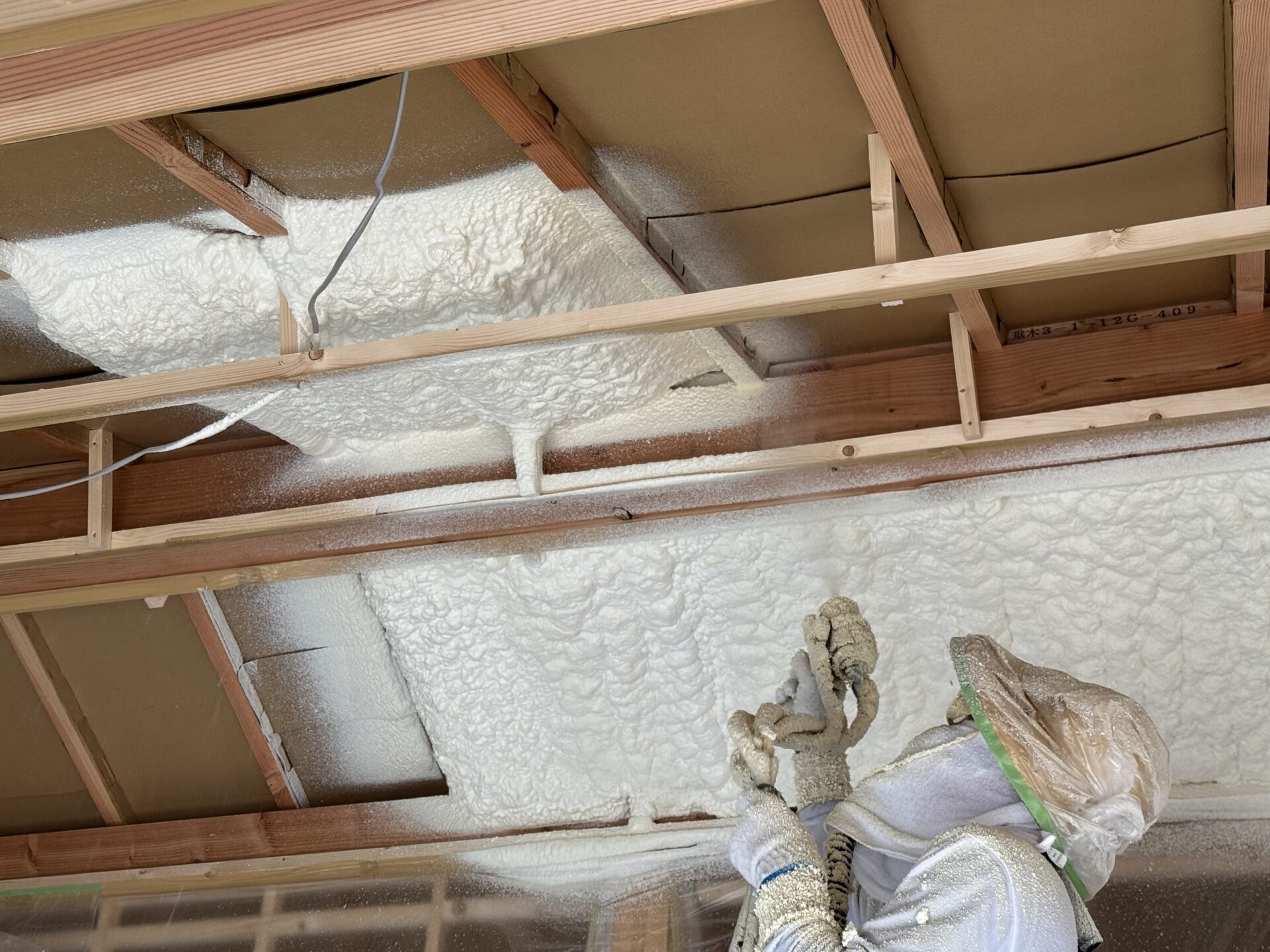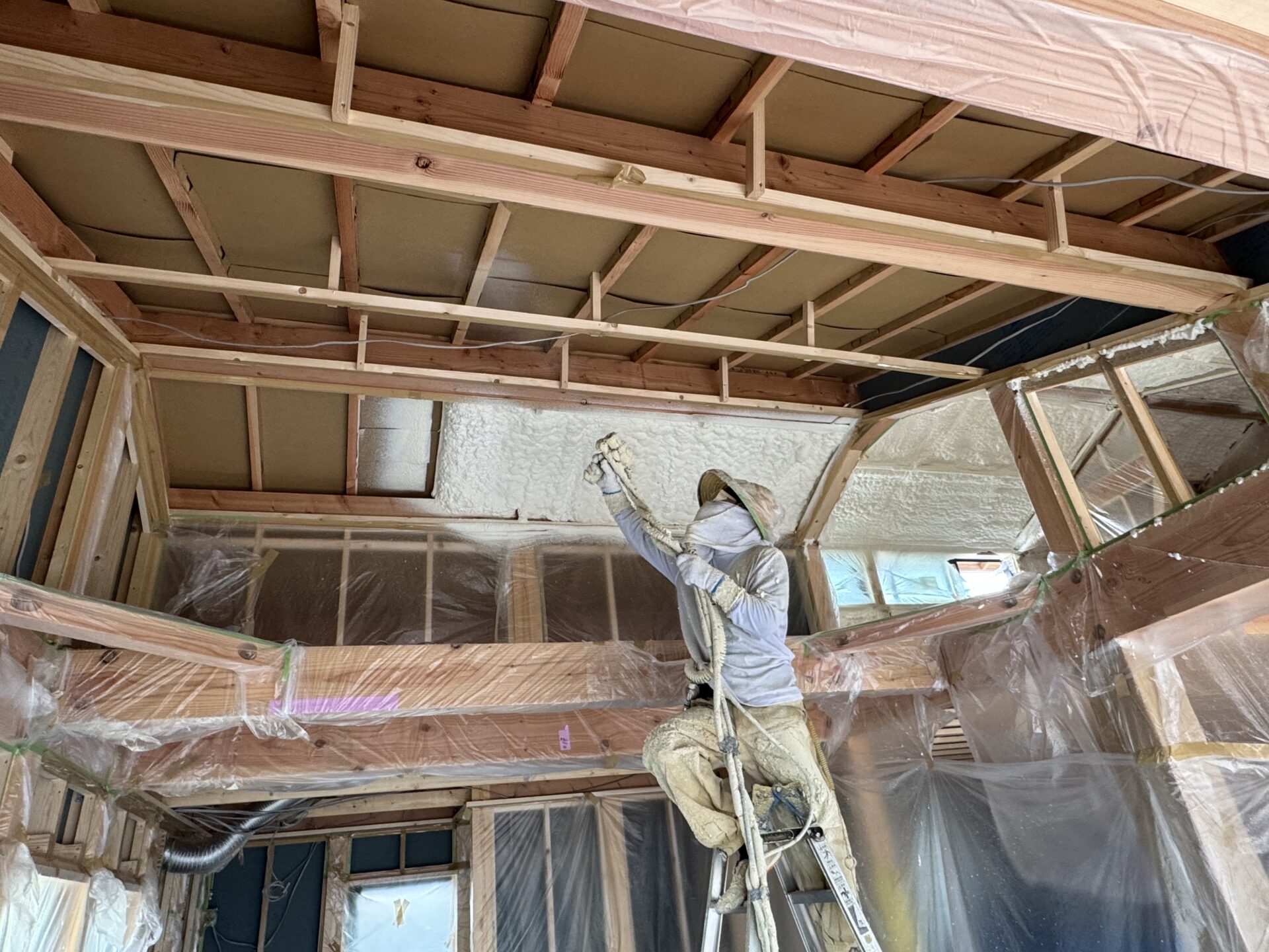 トップ > 現場監督さんの力こぶ日記 > 断熱材吹付作業