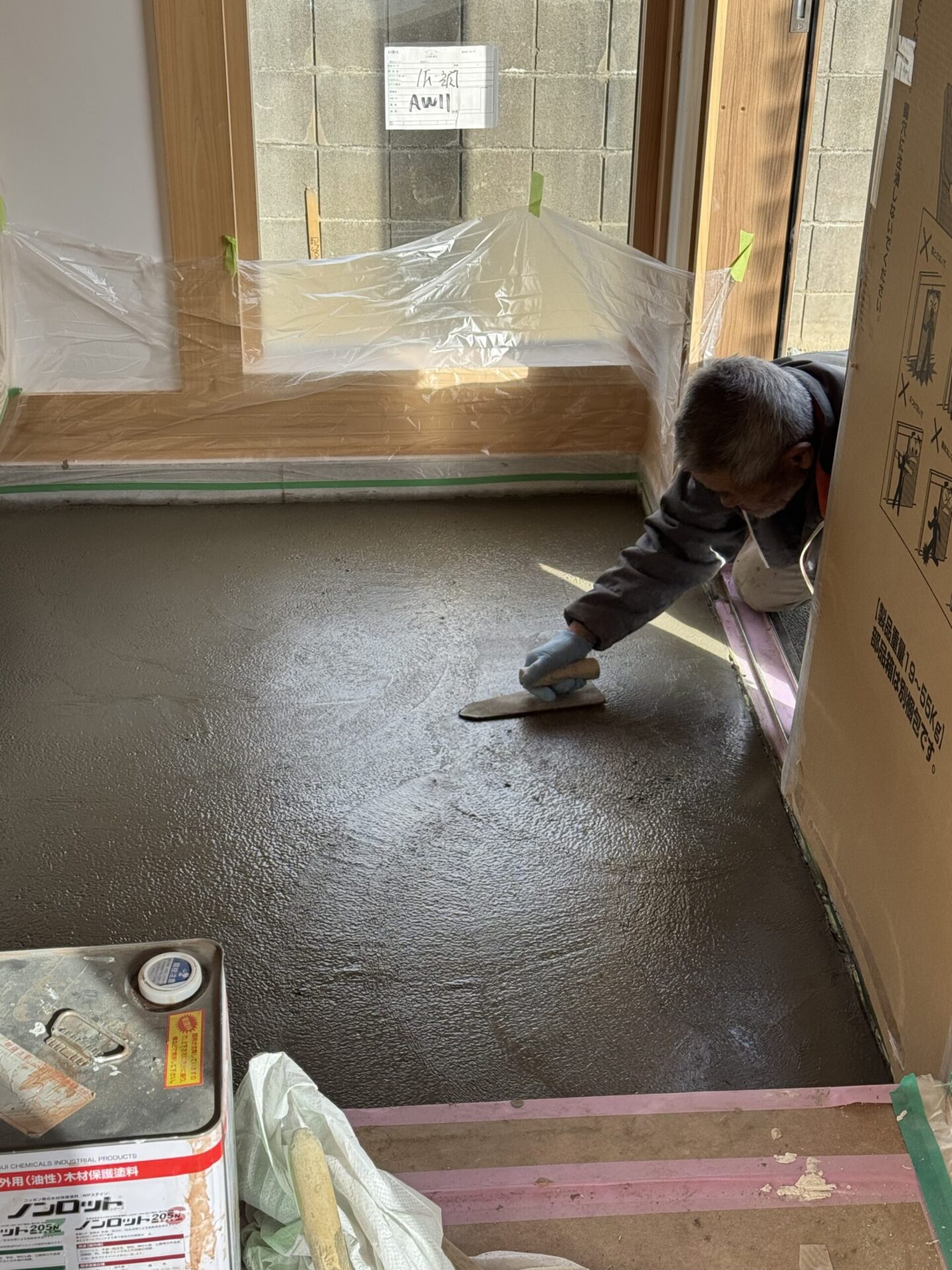 トップ > 現場監督さんの力こぶ日記 > 玄関土間 洗い出し仕上げ作業