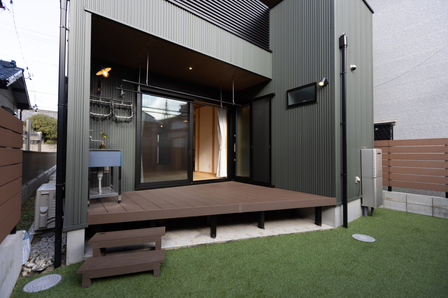 建物本体の仕様や性能あるいはデザインにこだわっても、その外側がありきたりの既製品だらけでは、せっかくの家が台無しです。家を建てるのであれば、建物だけでなく、敷地いっぱいまでこだわりたいものです。そのためには、庭だけでなく、駐車場、アプローチ、家の裏側などのいわゆる外構について、建物と一体的に計画する必要があります。建物の外装に用いたデザインや色.素材を、外構のデッキやフェンス.塀などに用いることで、都市部の狭い土地でも、敷地全体に統一感と広がりをもたせることができます。