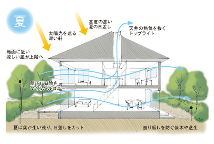 ..しかし、そんなことでいいのでしょうか...数値だけを追うのではなく、当然、数値は大切ですが、忘れてはいけないのがパッシブデザイン、例えば、軒を深くして夏の日差しを遮り、冬の日差しを取り込む、開口部の位置や大きさを考え風通しを良くするなど先人の教えを取り入れることも大切なのでは...