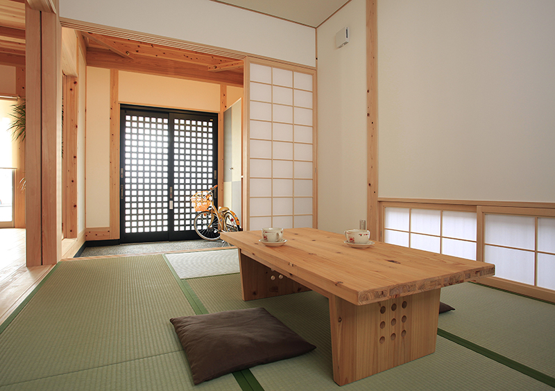 大工仕事に加えて、建具.表具.畳.左官などの日本の伝統技術が詰め込まれた木造建築の家の和室。伝統が息づく和室は、客間や応接室などのもてなしの間としてだけではなく、日々の暮らしに活用できる汎用性の高い空間です。座卓と座布団をおいて宴席、文机にパソコンでリモートワーク。洗濯物を畳んだり、子供を寝かしつけたりと家事や育児にも役立ちます。感染症の療養時には、和室ならではのゆるやかな間仕切りで、家族のお互いの気配が伝わり、安心感を覚えます。一つの空間を多用途に活かせるのが和室の奥義です。木や畳の親しみのある香りと温もりに、心身とも癒されます。