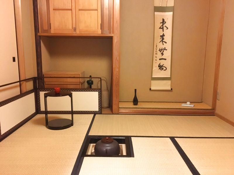茶室造形の基礎とされる草庵(そうあん)茶室は、安土桃山時代に千利休により完成を見ました。躙口(にじりぐち)、下地窓(したじまど)や連子窓(れんじまど)、中柱を立てて袖壁を付けた台目構え(だいめかまえ)と呼ばれる点前座(てまえざ)、荒壁で天井まで塗り回された室床(むろとこ)などは利休の考案とされています。古田織部(ふるたおりべ)、小堀遠州(こぼりえんしゅう)などが継承し、発展していった茶室は数寄屋造りの基礎となり、現代の和風住宅にも大きな影響を与えています。京都妙喜庵(みょうきあん)の茶室「待庵(たいあん)」は千利休と伝えられる唯一の現存茶室で、国宝に指定されています。