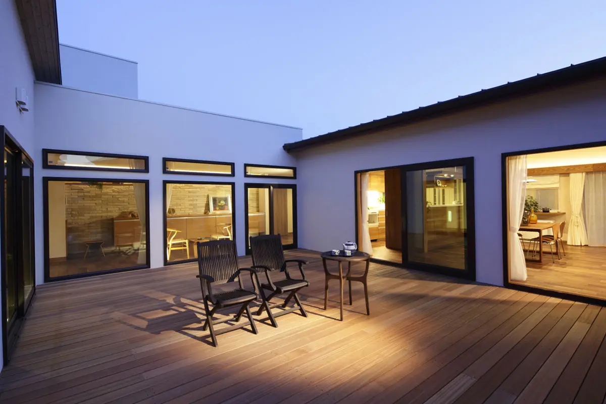 造園は飛鳥時代に中国から伝わったと考えられ、時代の流れに伴いさまざまに変化してきましたが、日本庭園は常に石や水や植物といった自然素材による自然風景の造形をも試みてきました。平安時代の貴族の館に見る浄土庭園、鎌倉から室町時代に禅宗寺院に多く見られた石庭、安土桃山時代には武家の権力を誇示する書院造り庭園、侘茶の露路の成立、江戸時代の大名庭園。明治以降、庭に西洋化の波が押し寄せ、やがて石のない草花主体の庭が増えていきました。庭に自然を取り込み生活に潤いをもたせたいと望んでも、市街地では十分な敷地の確保が難しいため、建物中央に中庭を設ける設計がよく見られるるようになりました。中庭を囲む各部屋に広いガラス窓があれば、室内に光や風を導き入れることができます。中庭中央に2階まで届く落葉樹を植えたり、1階に座って眺めてられる背丈の低い樹木や下草を植栽したりすれば、目の前で小さな自然が楽しめます。また、外からの視線を気にすることなく、子供を遊ばせたりテントを張ってお家キャンプ、テーブル、椅子を置いて外でコーヒータイム...様々な楽しみ方ができます。...自分だけのオリジナルスペースをつくってみませんか!...