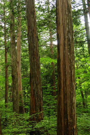 日本書紀に、スギとクスノキは舟に、ヒノキは宮殿に、マキは棺に使いなさい」
