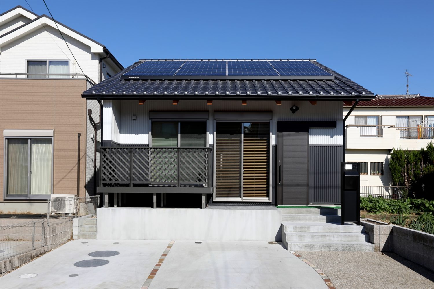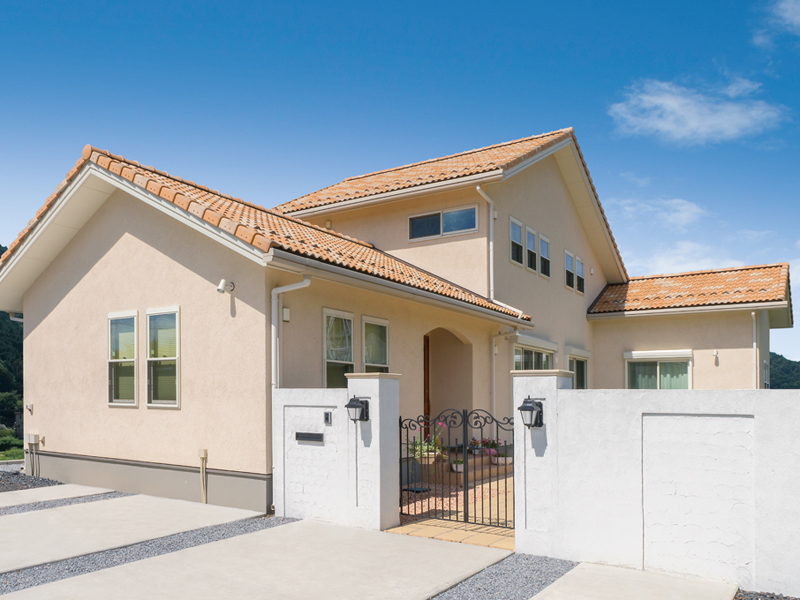 瓦屋根というと和のイメージを持つ人が多いと思いますが、そうとは限りません。例えば、オレンジ色やブラウンといった暖色系の素焼きの瓦の切妻屋根に、ホワイトの外壁を組み合わせると、明るい南欧風の外観デザインになります。その場合、一色で統一するのも素敵ですが、オレンジとブラウンの瓦をランダムに組み合わせても個性的で、温かい外観フォルムの住まいになります。瓦屋根の家は和でもなく洋でもなく、デザイン性の高い個性的な住まいの代名詞。牧歌的な風景になじむだけでなく、都会的な景観にも似合います。瓦は焼き物ですから仕上げの方法により、さまざまな色味や質感を出せるメリットもあります。数奇屋のような日本ならではの伝統的な意匠から、南欧のモダンなデザインまで、幅広い多様性が瓦屋根の魅力です。