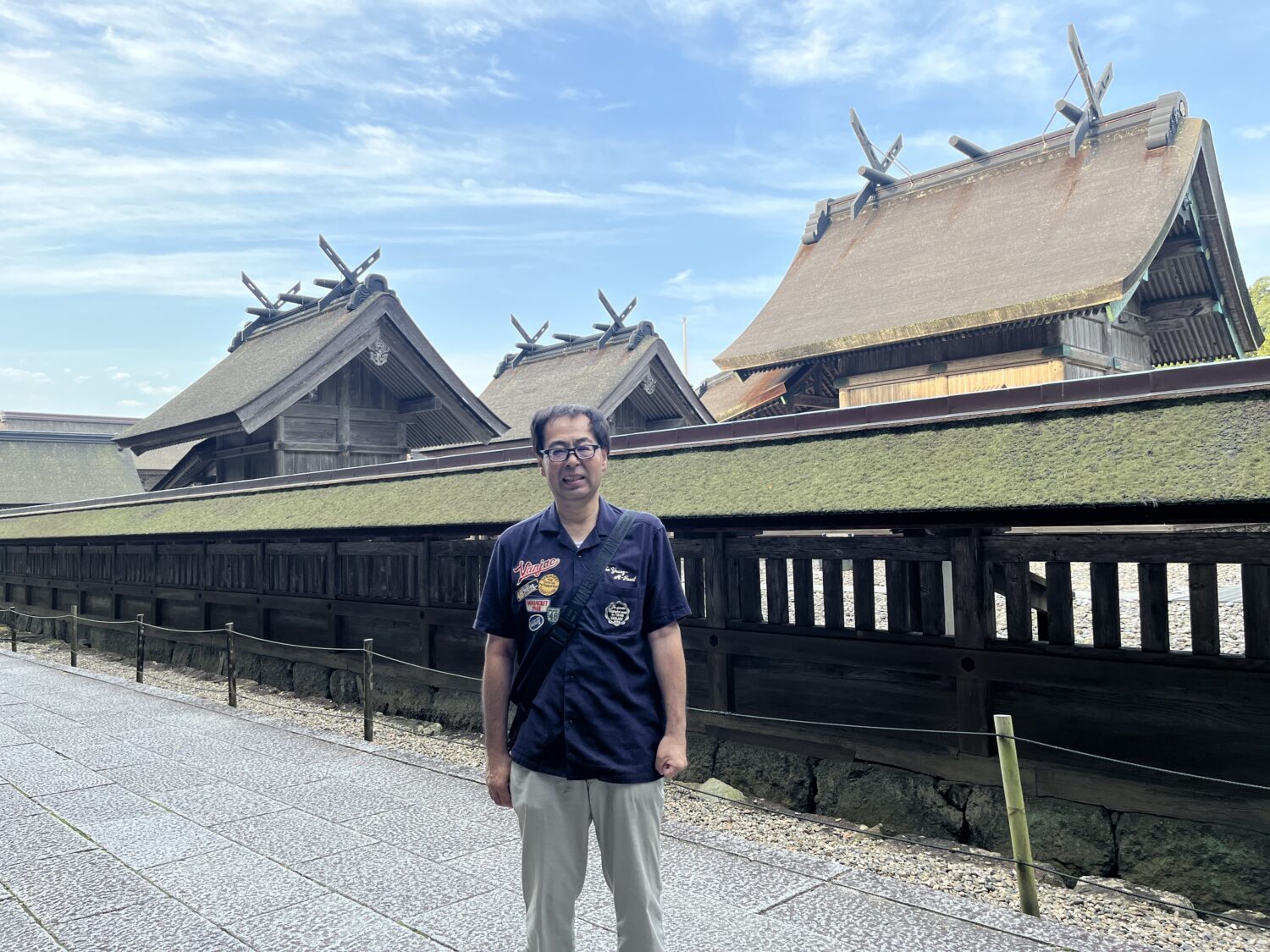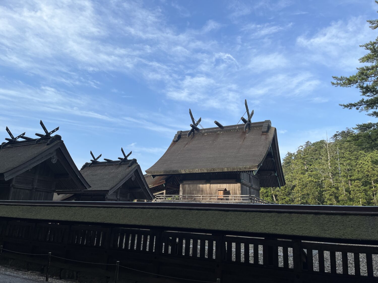 出雲大社に行ってきました。毎年参拝しているので、今まで何回も触れてきましたが、今回も出雲大社について書きます。  歴史と威厳に満ちた日本一の本殿。拝殿の奥に建つ八足門(やつあしもん)の先にあるのが、大国主大神(おおくにぬしのおおかみ)が鎮まる本殿。入母屋造りの楼門(ろうもん)と玉垣(たまがき)に囲まれたこの巨大な建造物は、日本最古ともいわれる神社建築様式「大社造り」で建てられており、8階建てのビルに相当する24mの社殿は日本一の高さを誇ります。現在の社殿は延享元年(1744)に造営されたもので、広さは10.9m四方。田の字状に配された9本の大きな柱で支えられており、中央の「心御柱(しんのみはしら)」にはとりわけ太い木が用いられています。現在、柱は礎石の上に立っているが、17世紀以前には柱根を地下に埋める掘立柱建物であったことがわかっています。また、社殿は南に向かって建てられているが、殿内の御神体は西に向くという、極めて珍しい構造をしています。檜皮で葺いた屋根の上には2本の木材を交差させた2組の千木(ちぎ)と、3本の勝男木(かつおぎ)を配して装飾性を高めています。 「平成の大遷宮」における改修工事を終え、延享元年の造営時の姿に戻った本殿。八雲山を背景に佇むその姿には、記起神話に記された国造りの神が鎮座するのにふさわしい威厳が漂っています。(出典 日本の神社創刊号出雲大社)