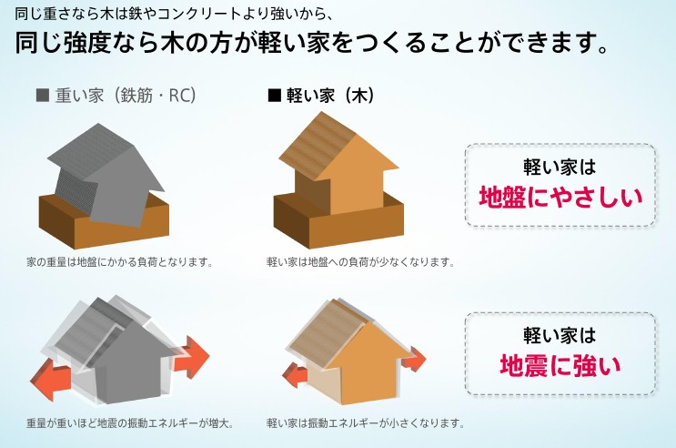 *木は軽くて丈夫なので地震にも強い