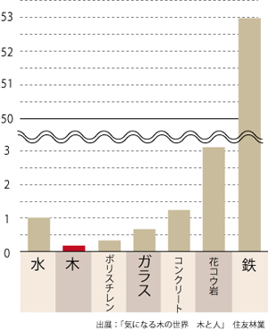 木の熱伝導率はコンクリートの10