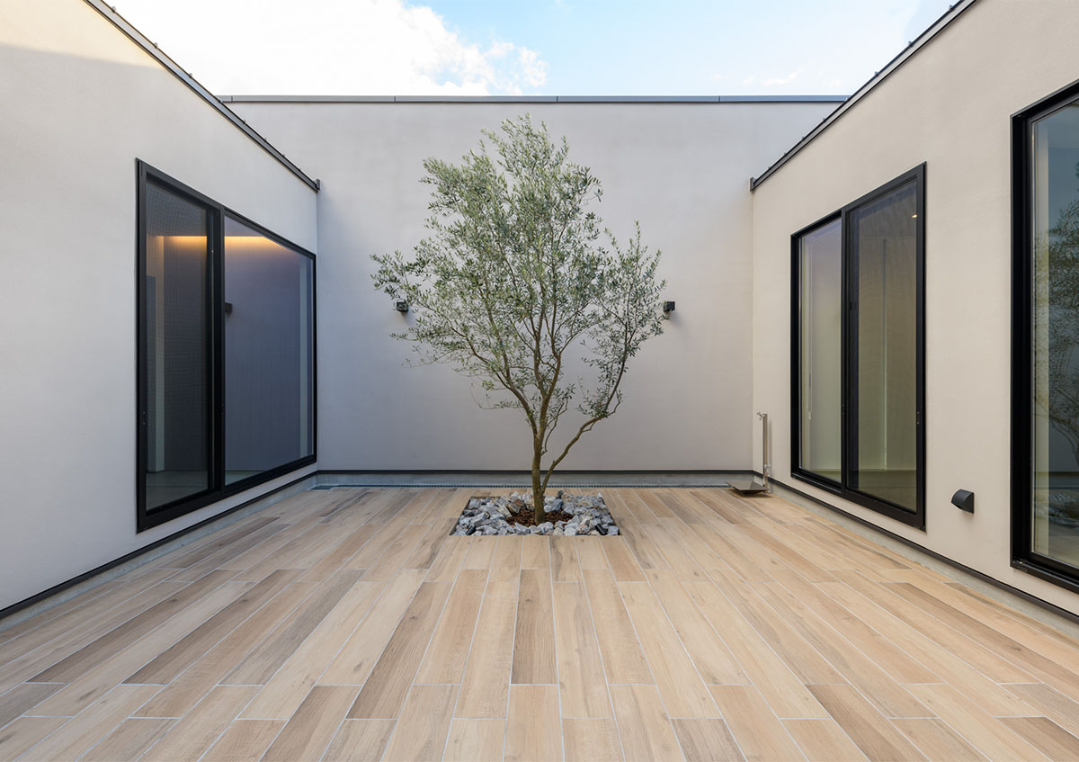 狭小地に建てる現代の住宅では、風通しや日当たりを求めてコの字型やロの字型に建てられた家屋の真ん中に中庭を儲ける設計が増えています。