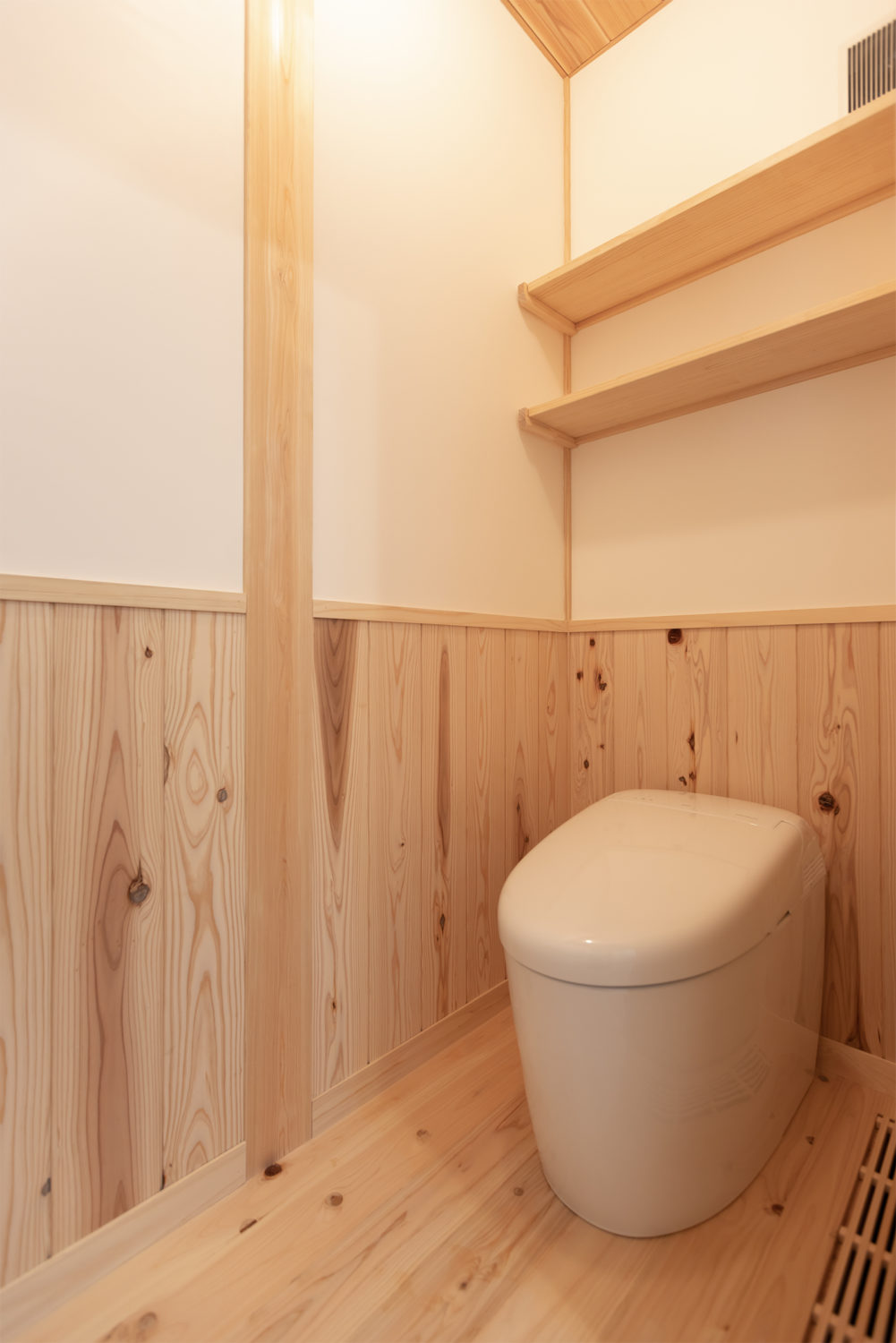 トイレは何も特別な場所ではありません。いわば個室のひとつ。家族全員が毎日利用し、使用時は誰にも邪魔されない自分だけの部屋。大切なゲストが使うこともあります。壁や柱の密集した強度のある空間ですから、地震の際に「トイレに逃げ込む」ことも考えられます。他の居室のように、できるだけ清潔でホッとできる、居心地の良い空間にしたいですね。
