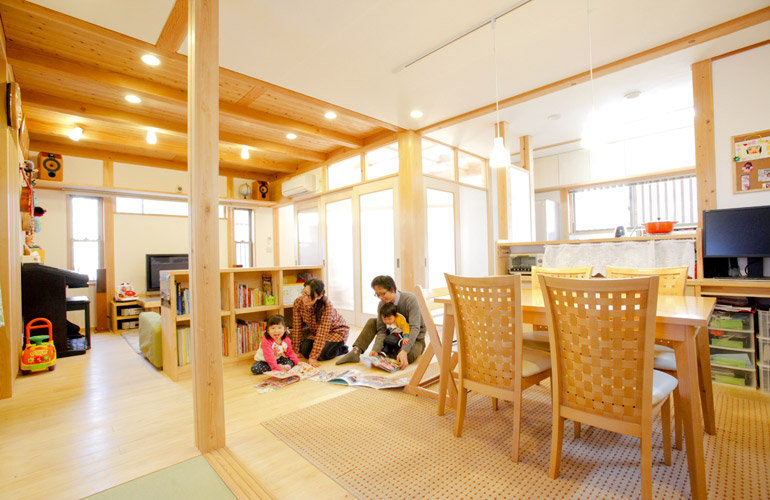 自然素材の壁、無垢の木の床.太陽の光や風と相性のいい、呼吸する家。それは「見えない快適さ」言い換えれば、人の五感になじむ空間をつくってくれるのです。