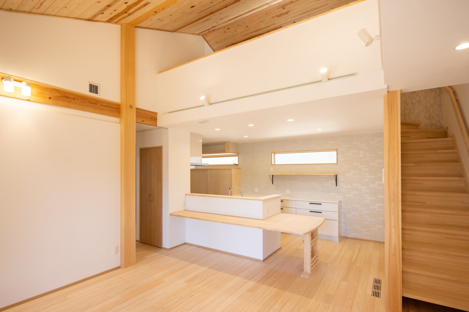 実は.単純に面積を増やしたからといって、住み心地が良くなるとは限りません。天井が低い.視線が抜けない.素材が硬く冷たい.こうした要素が重なると、広いはずの空間でも、どこか落ち着かない家になってしまいます。逆に、面積はそれほど大きくなくても、天井の高さに変化がある。窓の位置が工夫されている.視線が外へと抜けていく。こうした設計をすることで、数字以上に広く感じる家はいくらでもつくれます。